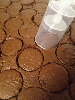 Once cake has completely cooled, take a push pop tube and cut out cake circles as shown: