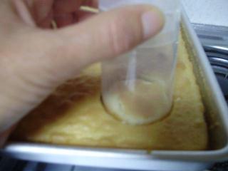 Remove cake from oven and let cool. You will keep the cake in the pan.